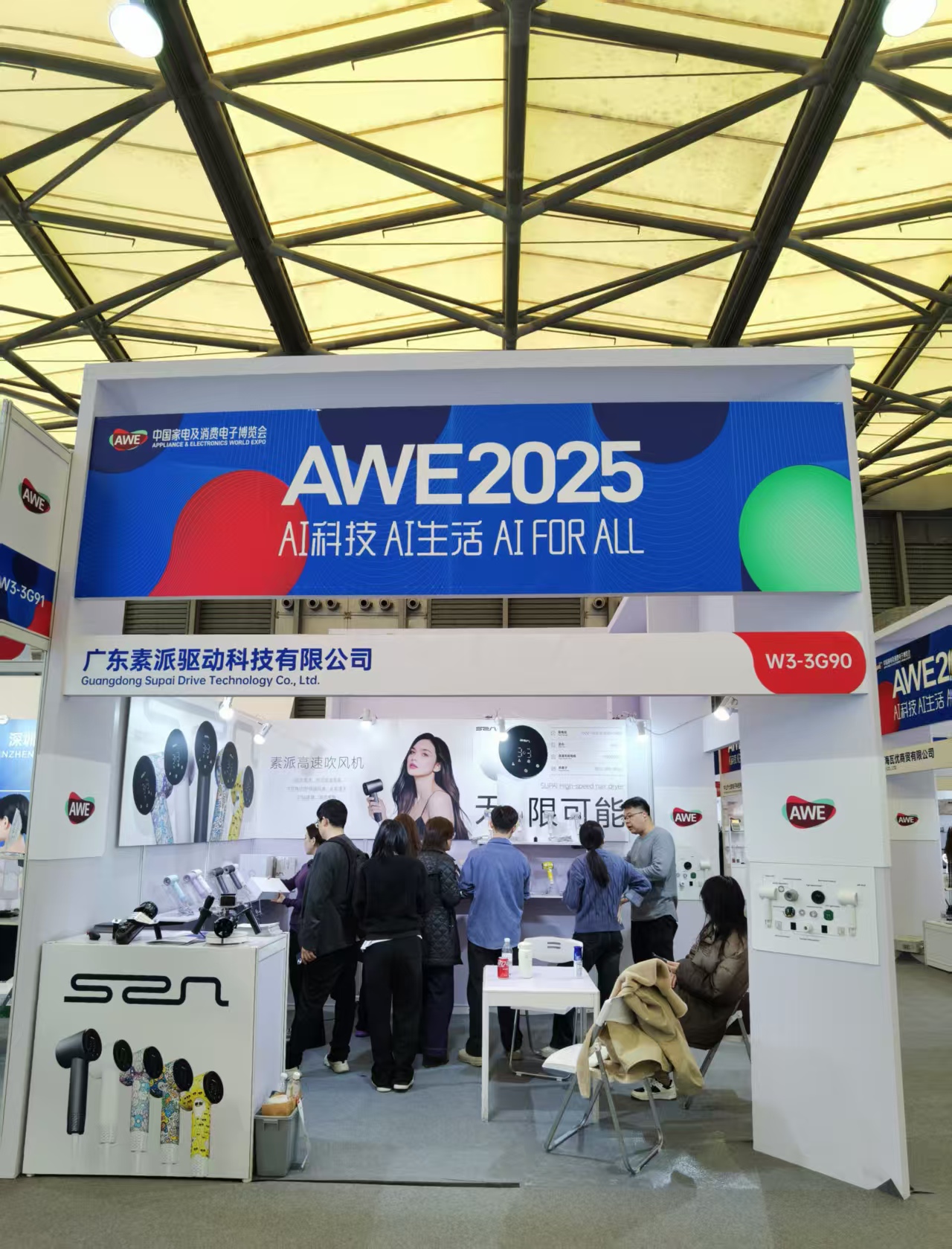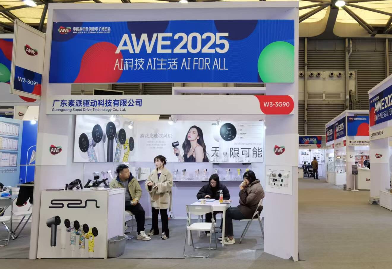 From March 19 to 23, 2025, Guangdong SUPAI Drive Technology Co., Ltd. participated in the Appliance & Electronics World Expo (AWE) Shanghai, one of the leading exhibitions for home appliances and consumer electronics. As a professional manufacturer and supplier, SUPAI presented its latest high-speed Mini Hair Dryers alongside its newly developed Underwater Liquid-Cooled Propulsion System (Underwater Scooter), demonstrating its strong R&D and production capabilities.